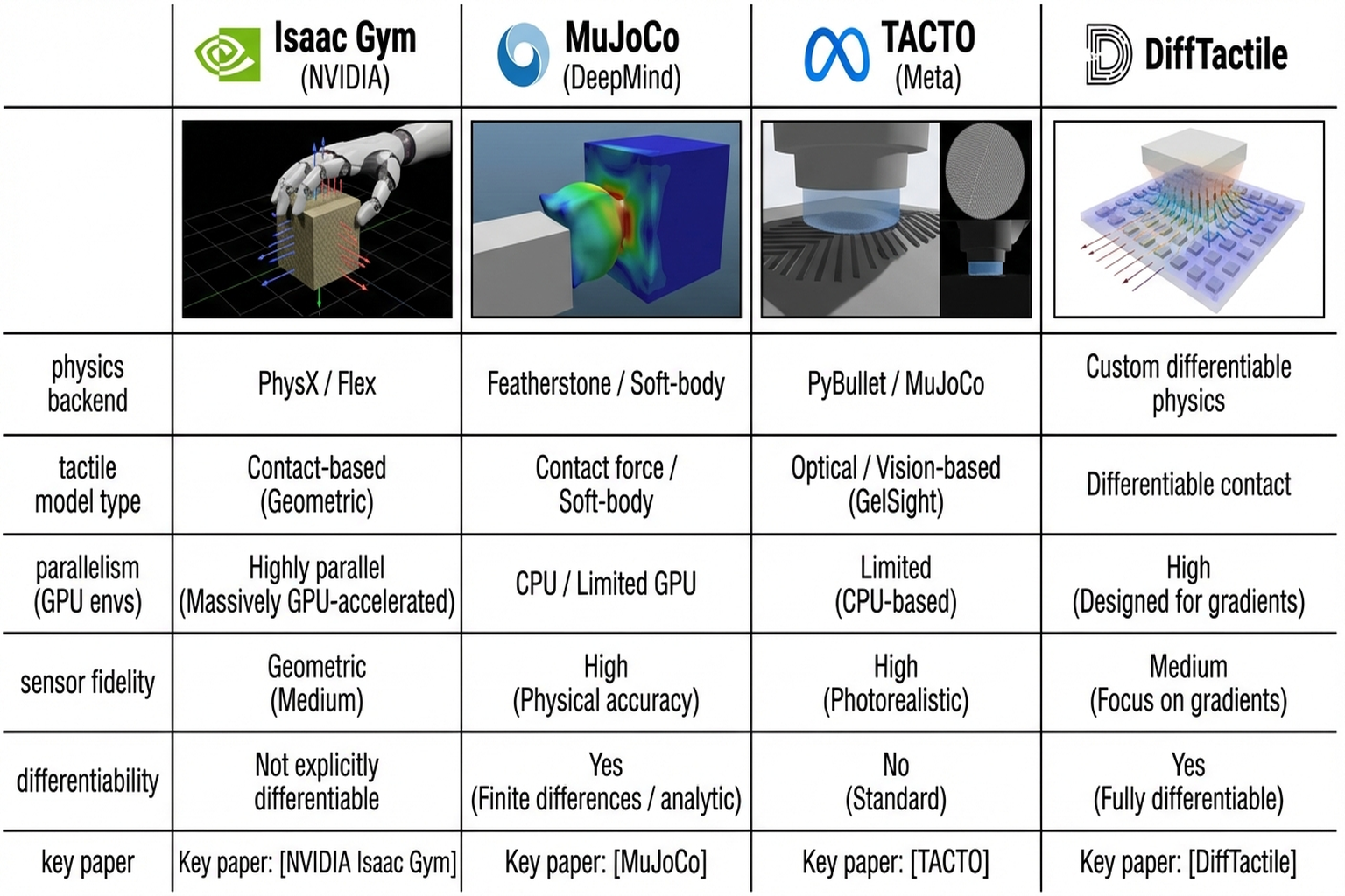 9.1 Simulation Engines: Isaac Gym/Lab, MuJoCo, Tacto, DiffTactile