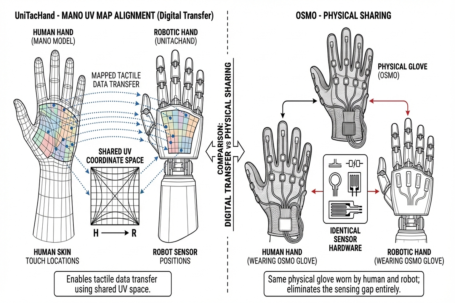 - UniTacHand: Software solution (representation alignment)