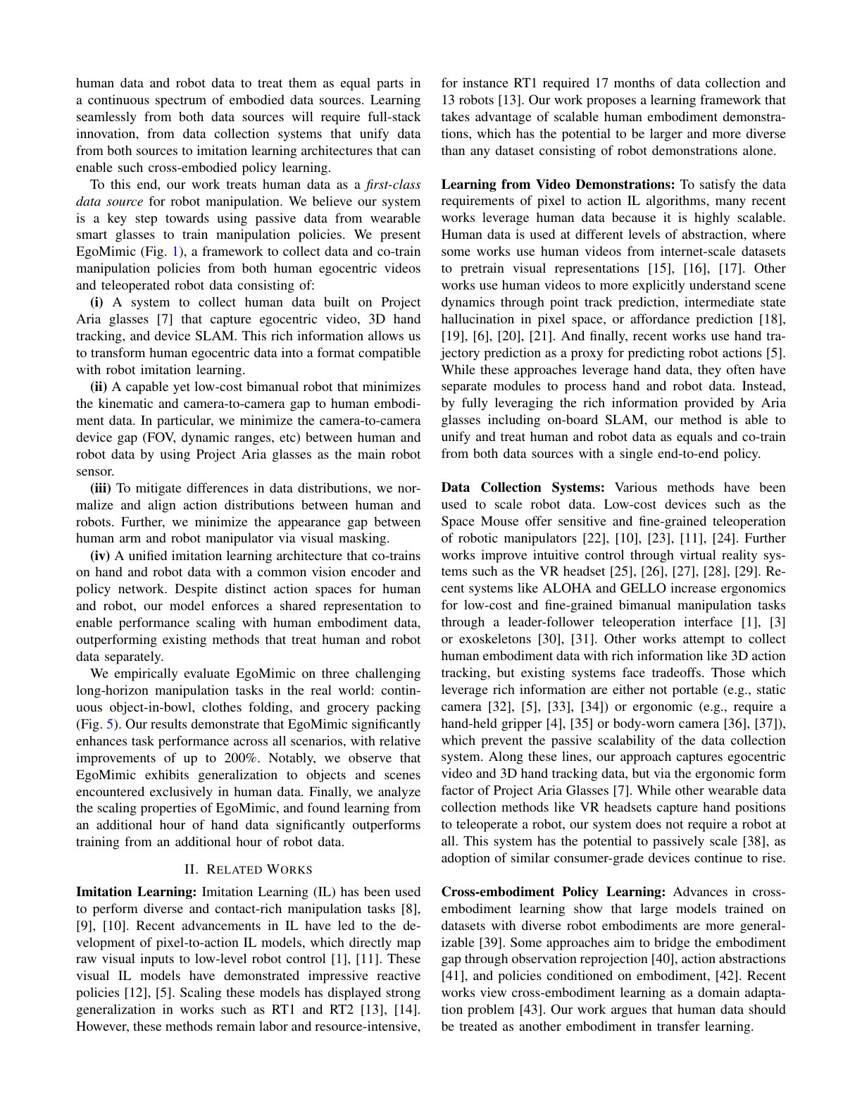 - The most natural form of human demonstration collection, requiring no special equipment (gloves, exoskeletons)